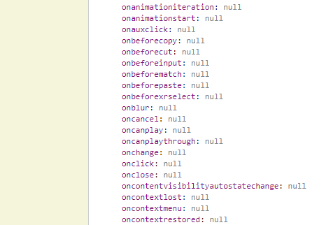 콘솔에서 property 이름 앞에 on이 붙어있다면 event listener다.