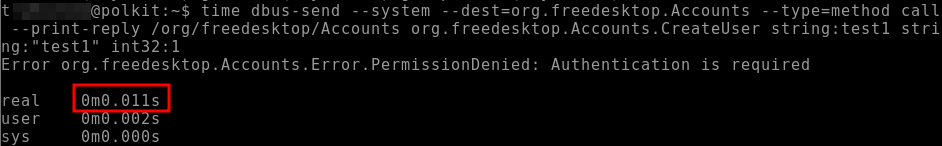 dbus 메시지를 dbus-daemon(서로 다른 프로세스가통신할 수 있도록하는 API)에 수동으로 보낸 다음 요청이 완전히 처리되기 전에 요청을 종료하면 polkit의 취약한 인증체계를 통해 권한을 부여할 수 있었습니다.