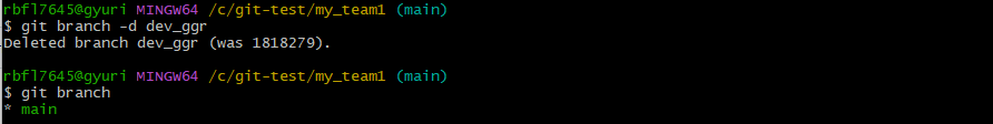 9. 기존 브랜치는 삭제하고 병합된 main 가져오기(팀원)