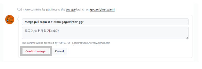 ⇒ 새로운 변경사항이 main에 병합되었다는 것 팀원에게 알리기