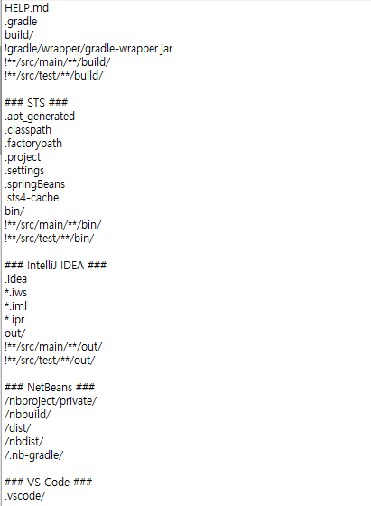 복사해서 프로젝트의 루트에 .gitignore파일 생성해서 붙여넣기