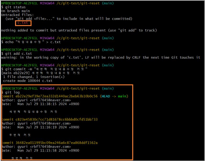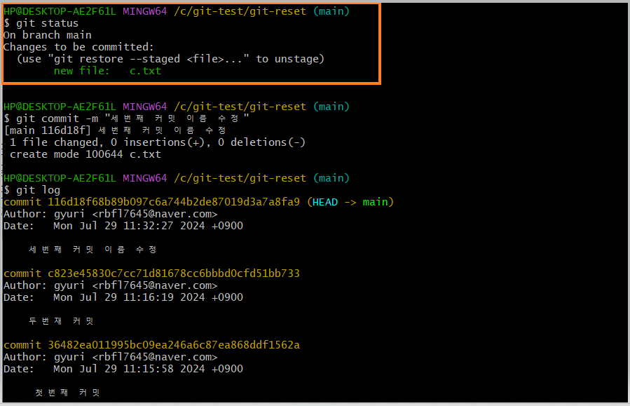 : 커밋 로그 & staging 영역 제거