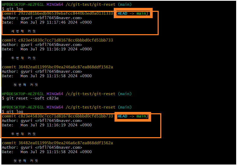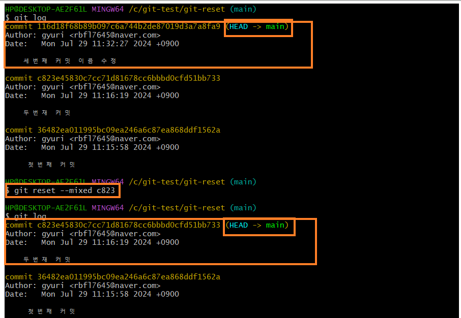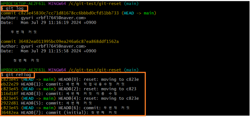 $ git log로 확인 가능