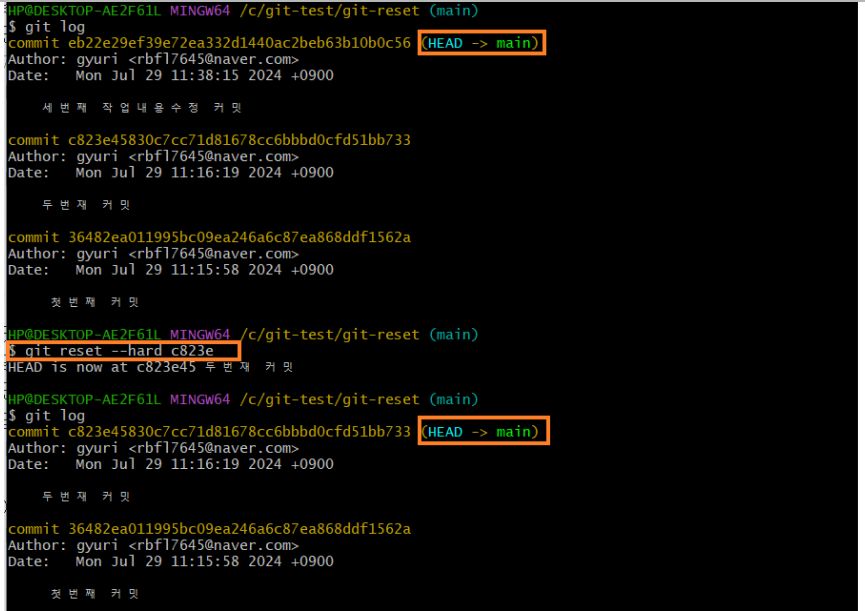 : 커밋 로그 & staging 영역 & 작업 디렉터리 내용 제거