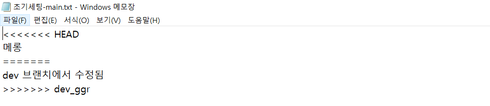 → 같은 파일을 dev_ggr 에서도, main에서도 수정한 상황에서