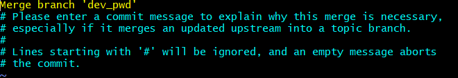 main 에서 $ git merge dev_pwd 하면 VI 에디터 켜짐