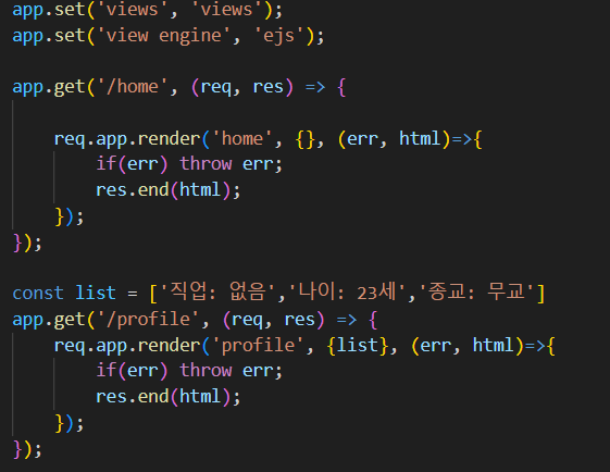 - app.set('view engine', 'ejs'); : 확장자 지정
