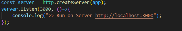 : http 모듈을 사용하여 app를 감싸서 HTTP 서버(server)를 생성, HTTP 서버와 Express 애플리케이션을 결합하여 실행
