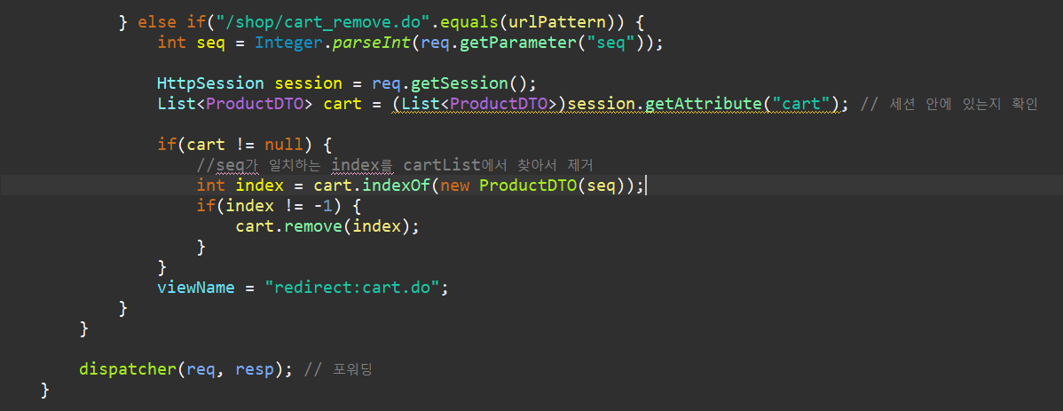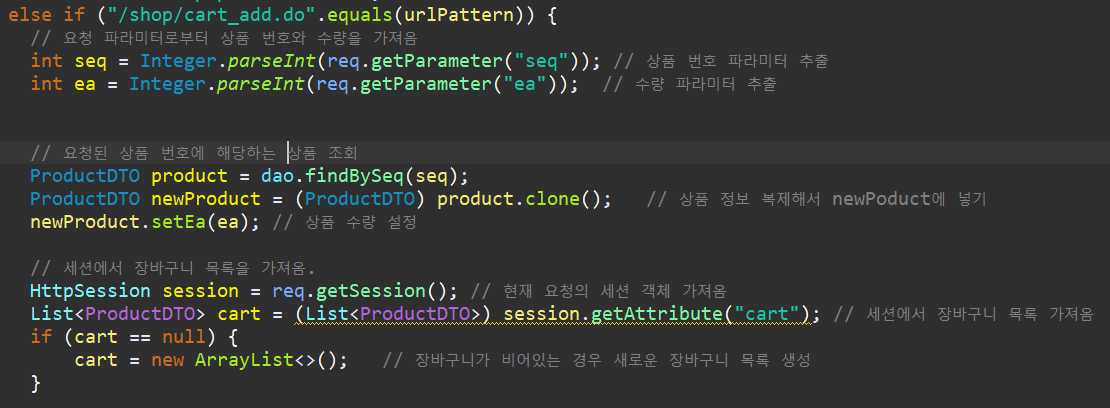 } else if("/shop/cart.do".equals(urlPattern)) {
