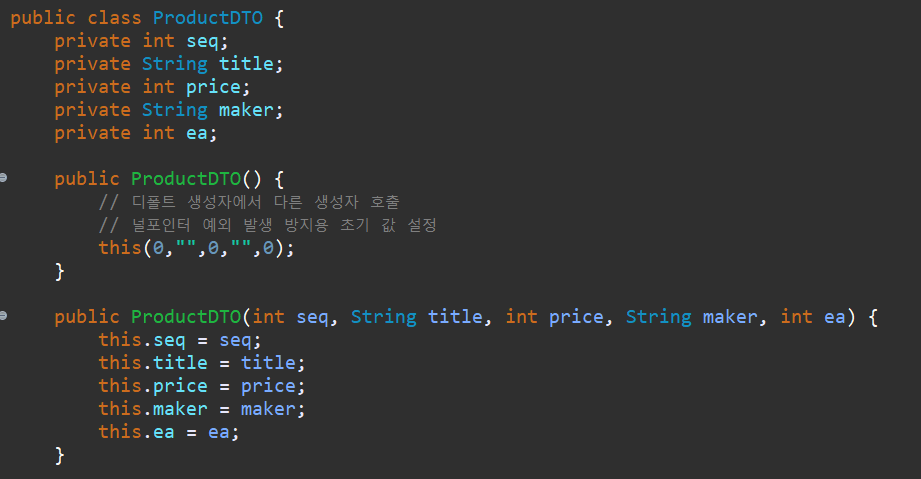 productList.add(new ProductDTO(1, "냉장고", 300, "삼성", 0));