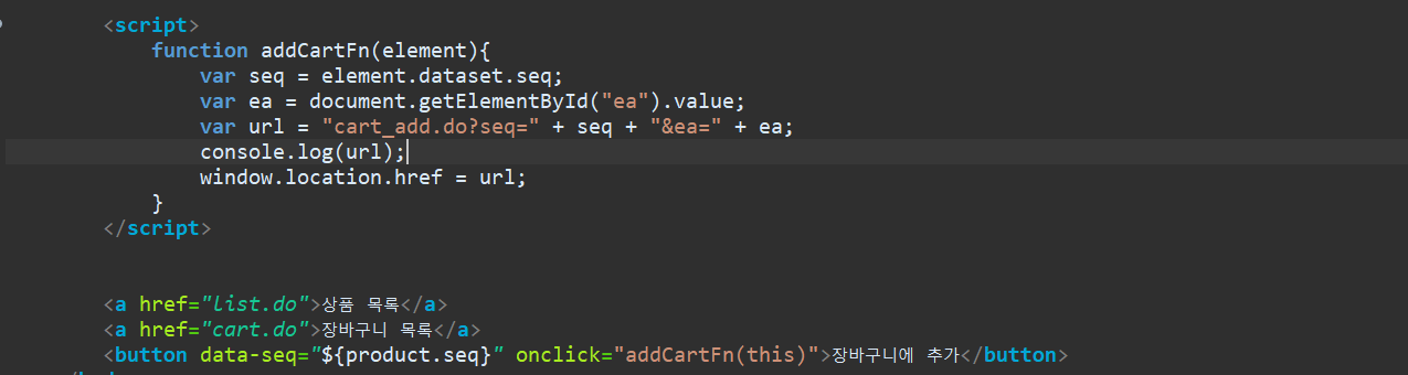 <button data-seq="${product.seq}" onclick="addCartFn(this)">장바구니에 추가</button>