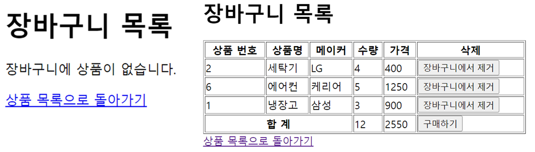 <h1>장바구니 목록</h1>