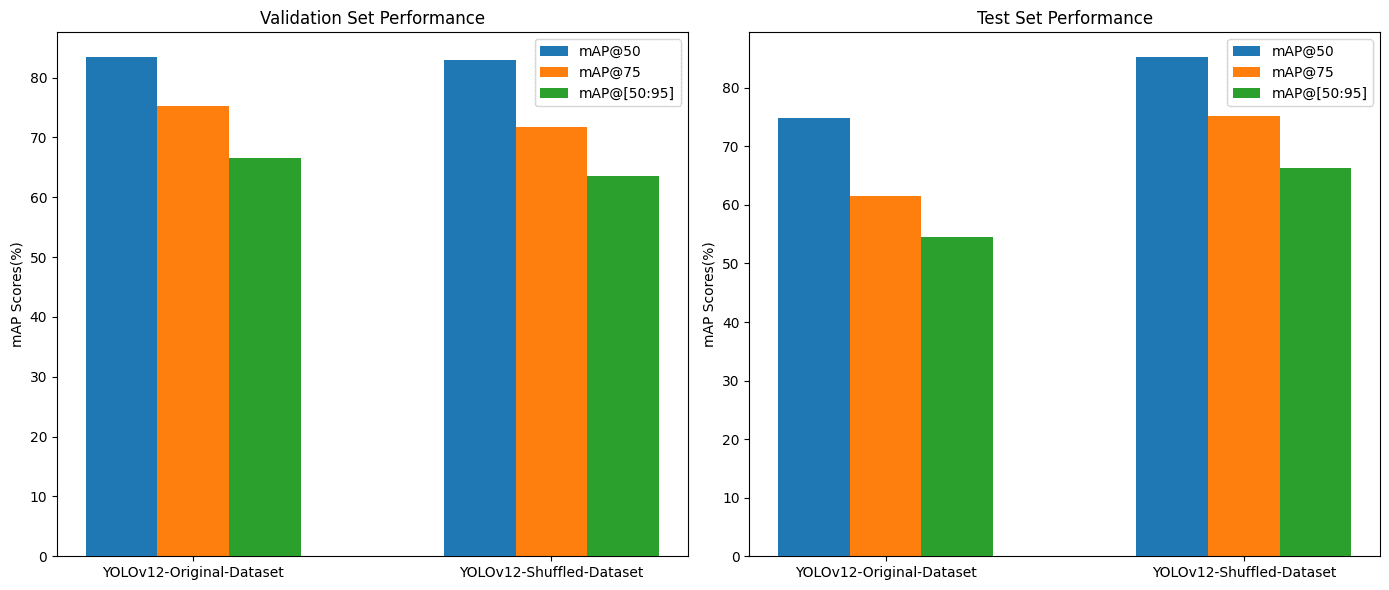YOLOv12는 Ground Truth 이미지에서 표시된 객체를 탐지할 수 있었던 유일한 모델이었다. 전반적으로 모든 모델이 객체 탐지에서 유사한 성능을 보였지만, YOLOv11은 여전히 중복 탐지(overlapping detections)를 발생시켜 불필요한 예측이나 정확도 감소 가능성을 나타냈다.