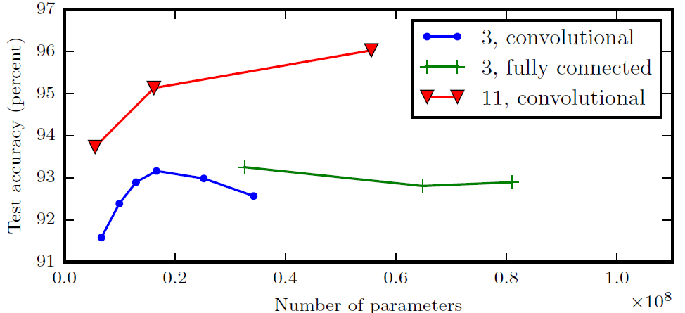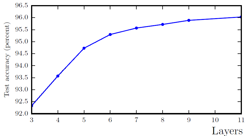 아래는 multi-digit 숫자 인식 문제에 대해 layer 수와 accuracy에 관한 실험적 결과를 나타내는 그래프이다.