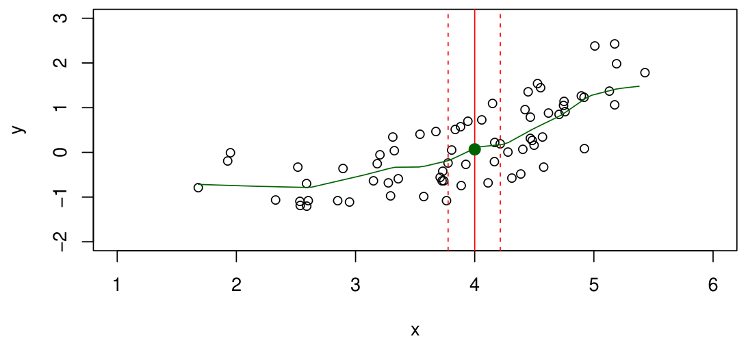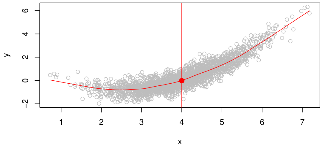 따라서, E(Y∣X=x)를 다음과 같이 근사하여 계산한다.