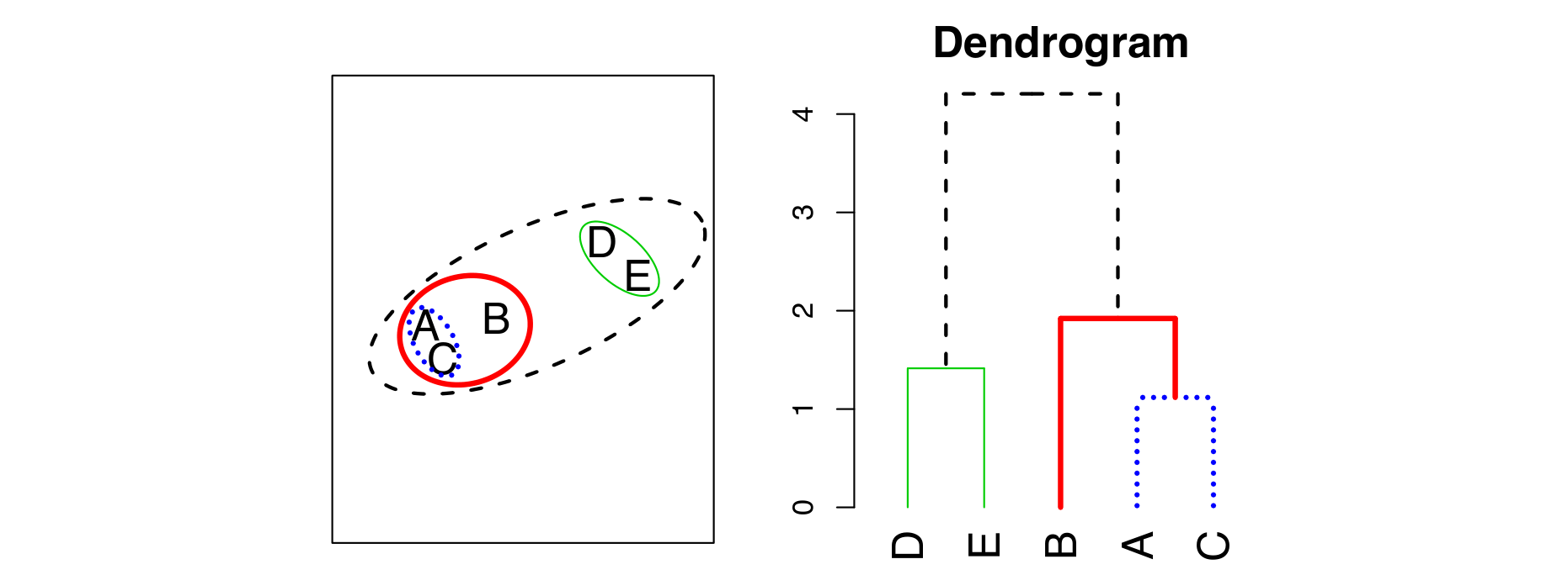 Hierarchical clustering으로 생성된 dendrogram을 해석할 때 주의해야 할 점은 어떤 두 data가 dendrogram에서의 높이차가 적다고하여 해당 data의 거리가 실제로 가까운 것은 아니라는 점이다.