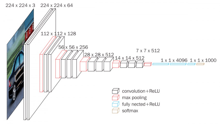 AlexNet에서는 다양한 크기의 filter(11, 5 등)을 사용했으나, VGG16에서는 3x3 size의 filter만을 사용하였다. 또한, 8개의 layer를 갖는 AlexNet에 비해 VGG16은 16개의 layer를 갖는다.