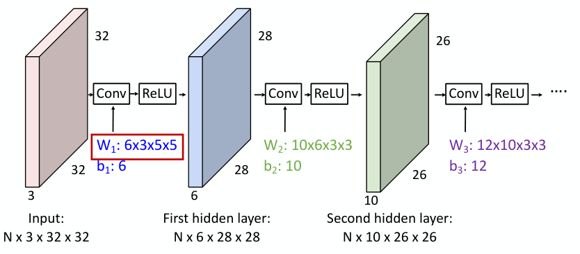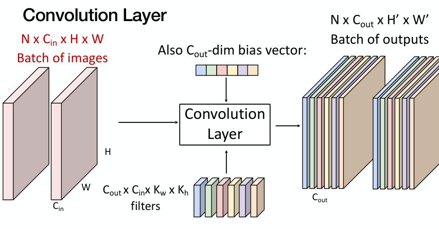 일반적으로 학습은 batching을 적용하기 때문에, 이를 고려하면 최종적으로 하나의 convolution layer는 다음과 같다.