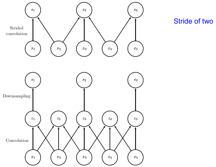 Convolution을 진행할 때, filter가 일정 간격마다 이동하여 계산을 진행한다. 이 때, filter가 이동하는 간격을 stride라고 한다. 기본적으로 stride는 1이지만 (한 칸씩 이동), stride를 2 이상으로 설정할 수도 있다.