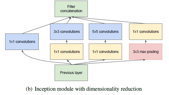 GoogLeNet은 inception module을 도입하여 다양한 크기의 filter를 병렬로 사용하여 computation을 감소시키고 성능을 향상시켰다. Inception module이란 서로 다른 size의 filter를 사용하여 여러개의 feature를 뽑아내고, 이를 하나로 합치는 역할을 수행한다.