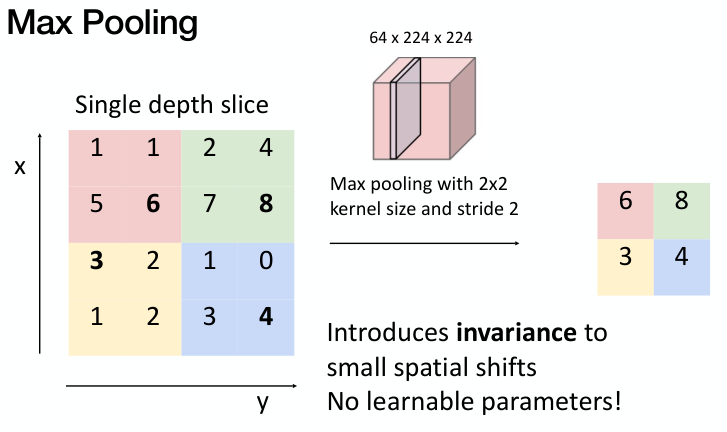 Pooling을 통해 input의 미세한 변화에 보다 robust하게 학습을 진행할 수 있고, feature를 잘 뽑아내면서 dimension을 줄일 수 있다 (downsampling).