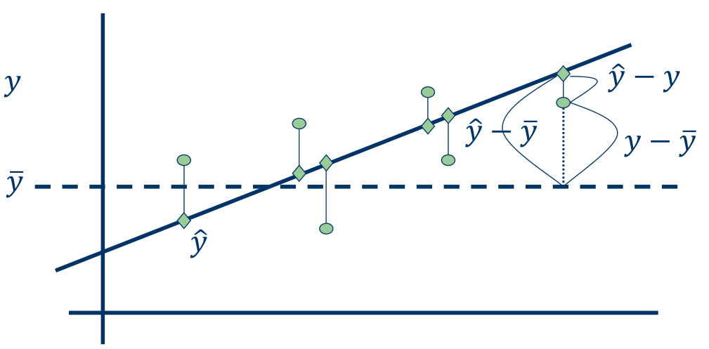 R2는 regression model이 data를 얼마나 잘 설명하는 지를 나타내는 measure이다. 0에서 1사이의 값을 가지며, data의 variance 중 regression model이 설명하는 variance의 비율을 나타낸다.