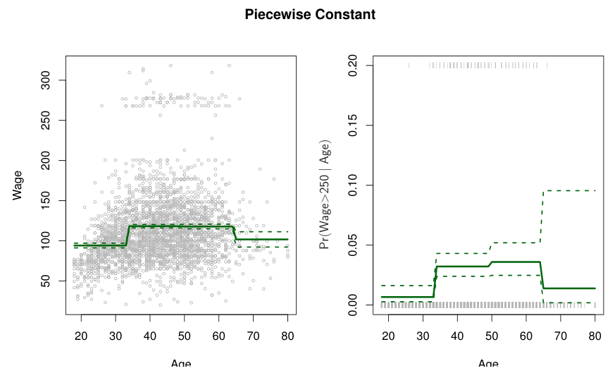 Piecewise polynomial은 polynomial regression과 step function을 합한 것으로, feature를 구간 별로 나눈 후, 구간 별로 다른 polynomial regression을 적용한 것이다.