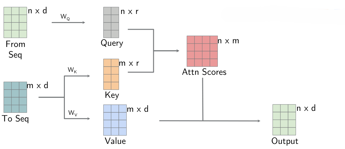 이후는 attention에서 했던 방식과 동일하게, query와 key를 이용하여 attention score를 구하고, 이를 이용해 attention output ()을 산출한다.
