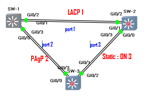 LACP,PAgp와 다르게 프로토콜을 사용하지 않으므로, 서로 회선만 Up이면 동작 가능