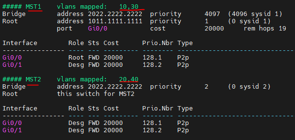 VLAN 20과 40은 인스턴스 2에 할당 (SW-2)