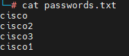 echo "cisco3" >> passwords.txt