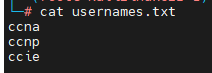echo "ccna" >> usernames.txt