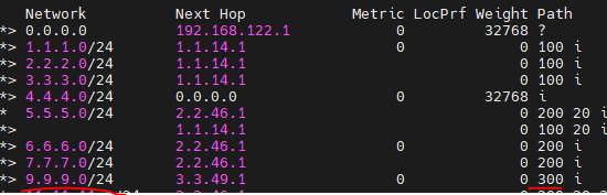 next hop이 9.9.9.9 or 11.11.11.11인것을 확인할 수 있음
