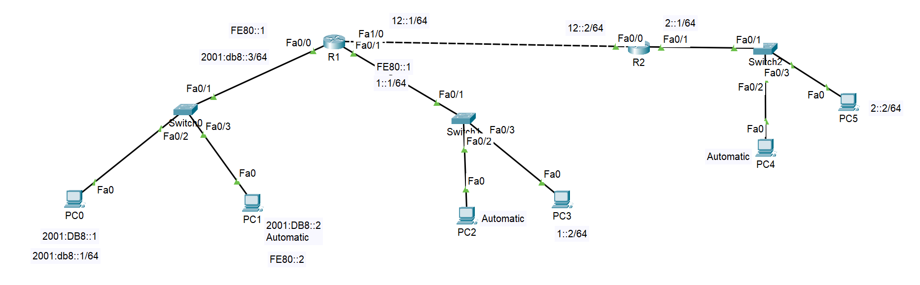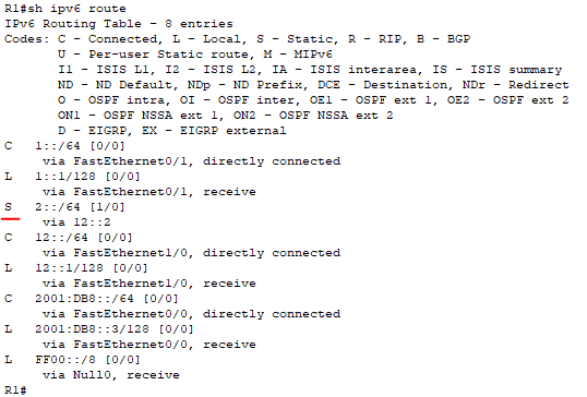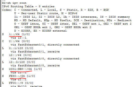R2(config)#ipv6 route 2001:db8::/64 12::1