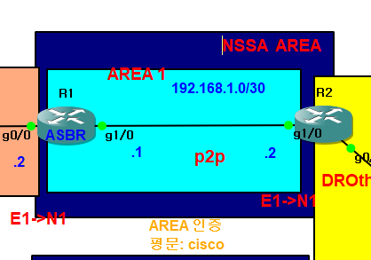 R2에서 NSSA 설정 후 E1,E2로 되어있던 외부 경로가 모두 삭제됨