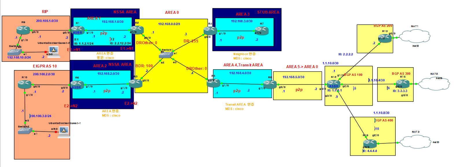 R5와 R8 라우터는 virtual-link를 사용하여 OSPF 영역 4 내에서 논리적으로 연결됨