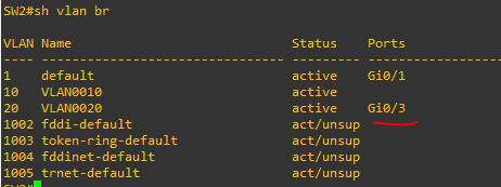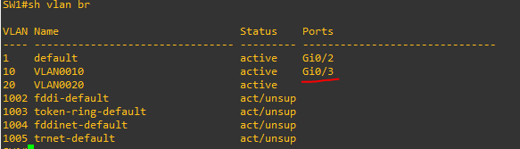 switchport access vlan 20