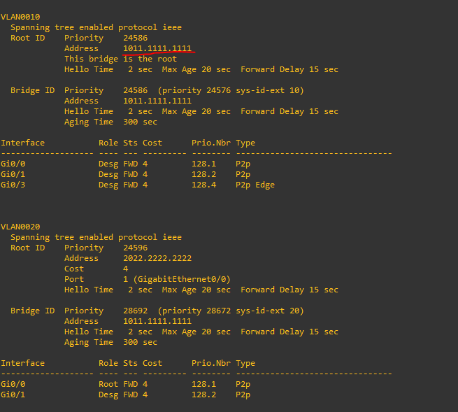 spanning-tree vlan 20 root primary