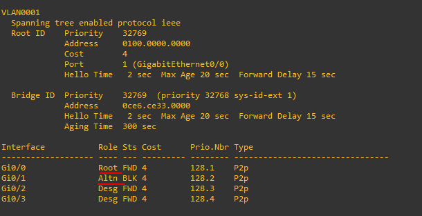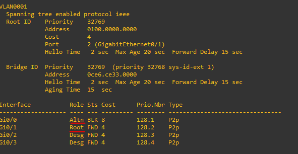 root switch인 sw1의 모든 포트가 desginated port