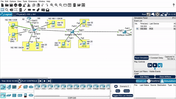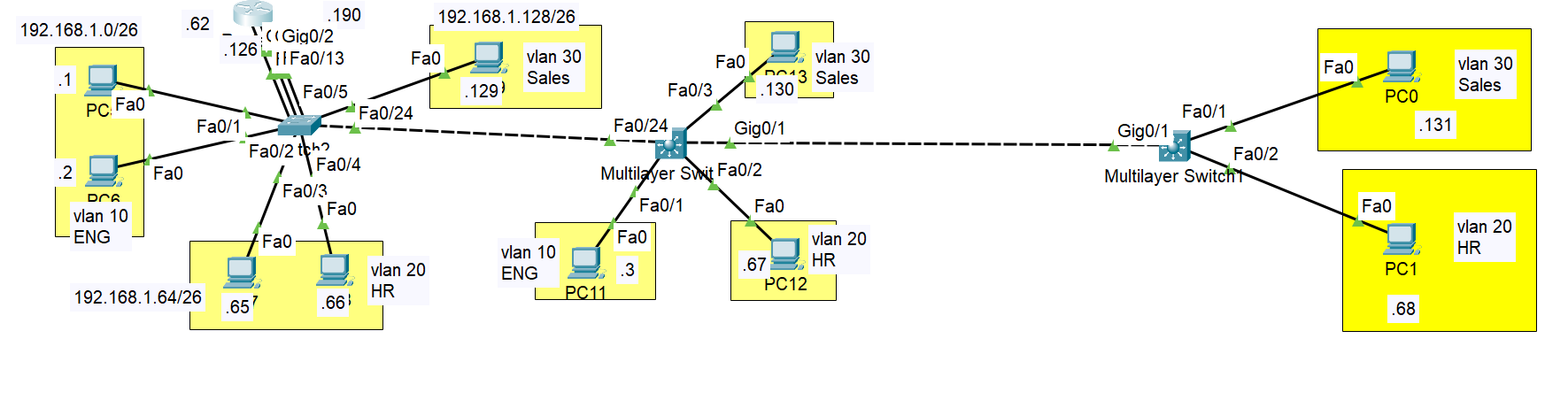 dotq1 적용, 패킷트레이서 L3 스위치라 적용해줘야함