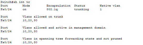Switch(config-if)#switchport trunk allowed vlan 10,20,30