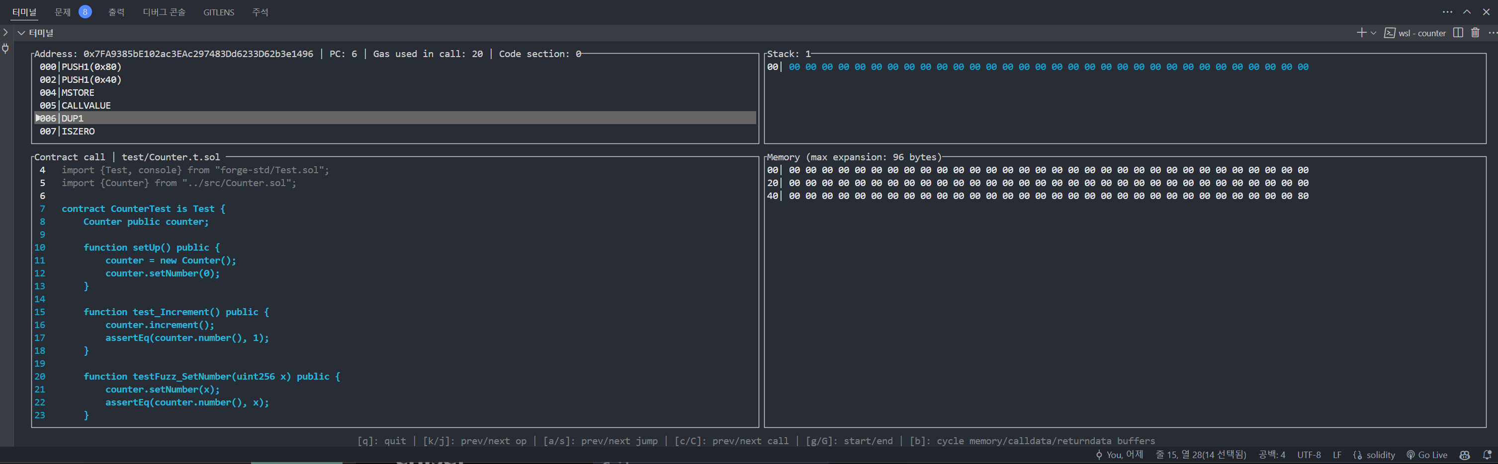 forge test # 테스트코드 실행 (함수명 ^test로 시작해야함)