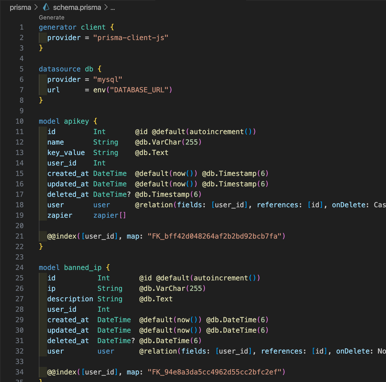 schema.prisma 업데이트schema.prisma 파일에서 모델을 수정하거나 추가한다.schema.prisma 포맷팅$ npm run prisma:format