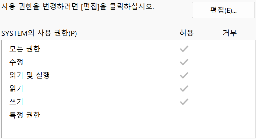 그 아래에 위와 같은 3개 줄을 설정해준다. 만약에 여기서 저장이 되지 않는다면 속성 칸에 들어가서 본인의 사용자에 대해서 모든 권한을 허용으로 누르자.