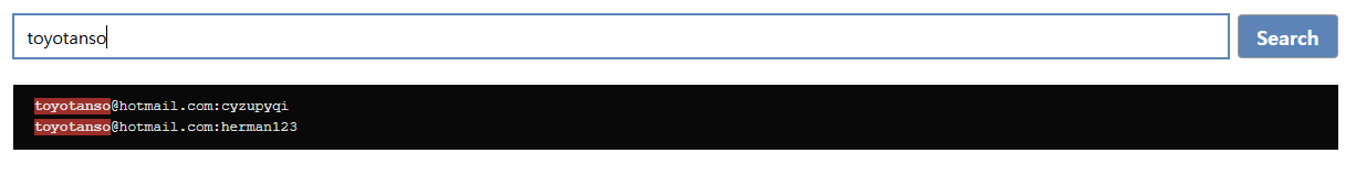 데이터가 유출 된 적이 있는지 확인하는 사이트를 통해 toyotanso라는 키워드 검색한다.
