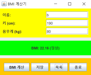 JButton calculateButton = new JButton("BMI 계산");