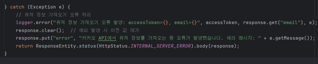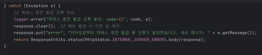 - 엑세스 토큰 발급 중 발생한 모든 예외를 처리