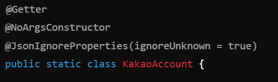- KakaoAccount 클래스의 객체로 JSON 데이터를 매핑합니다.