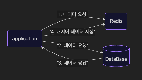 이전과 달리 간단한 전략이다. 데이터를 저장할 때는 레디스에 저장하지 않고 데이터베이스에만 저장한다. 그러다 데이터를 조회할 때 레디스에 데이터가 없으면 DB로부터 데이터를 조회해와서 레디스에 저장하는 방식이다.